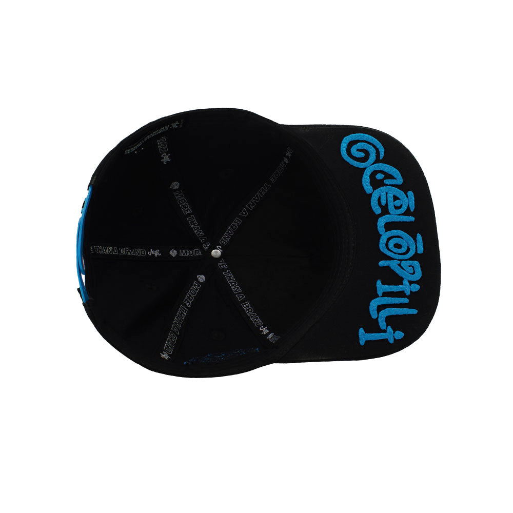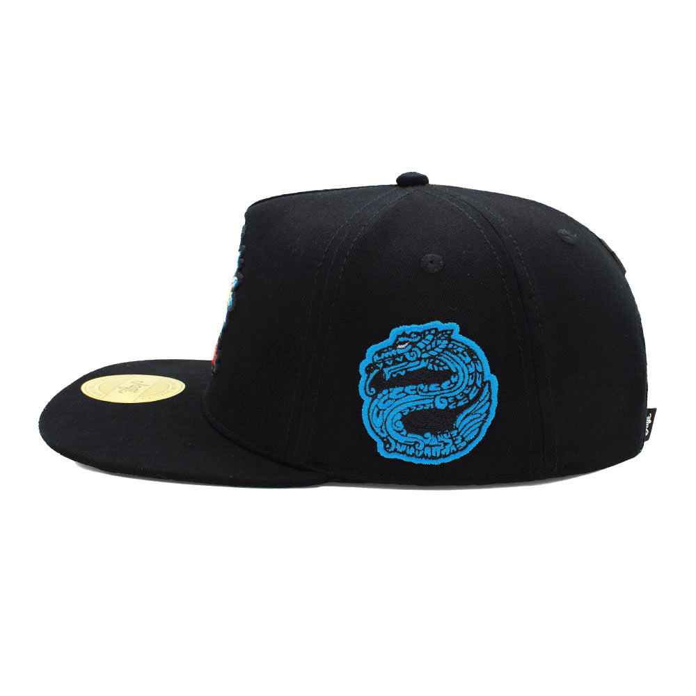 Es una gorra plana, con bordado en alto relieve en el panel frontal, lateral izquierdo y visera Inferior bordada en alto relieve con el nombre del ser mitológico
